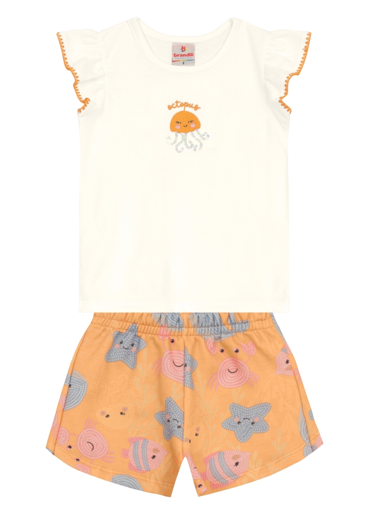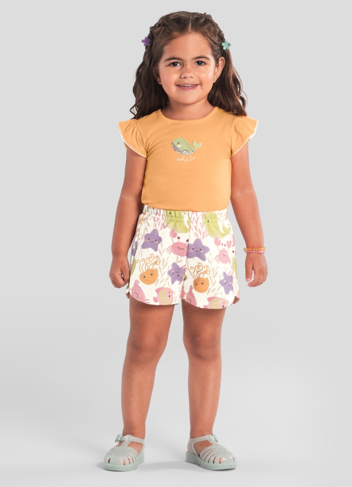 Encante-se com o conjunto infantil da Brandili, perfeito para as pequenas aventureiras! Composto por uma blusa em meia malha, delicadamente adornada com um bordado de paetê de baleia, e shorts em moletinho com estampa semelhante, este conjunto une conforto e estilo. O cós elástico do shorts proporciona liberdade de movimento, ideal para brincadeiras. Combine com sapatilhas e um chapéu para um look adorável e cheio de charme!