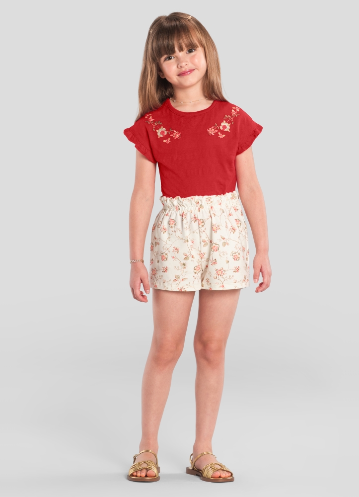 Encante sua pequena com o conjunto infantil da Mundi, perfeito para brilhar em qualquer ocasião! A blusa, confeccionada em meia malha trabalhada, apresenta um delicado bordado de flores e mangas em babado, garantindo um toque de charme. O shorts em cotton com estampa florida e cós elástico proporciona conforto e liberdade para brincar. Este look é ideal para dias ensolarados, permitindo que sua menina aproveite cada momento com estilo e elegância. Combine com sandálias e um chapéu para um visual completo!