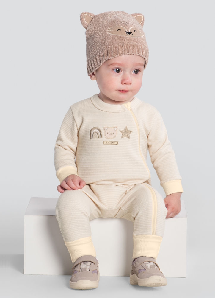 O macacão bebê unissex de ursinhos é uma peça super fofa e confortável para os pequenos. Confeccionado em moletinho, ele é perfeito para manter o bebê aquecido nos dias mais frios. O aplique bordado de ursinhos dá um toque especial à peça, tornando-a ainda mais charmosa e adorável. Além disso, a modelagem unissex permite que seja usada por meninos e meninas, sendo uma opção versátil para o enxoval do bebê. Este macacão é ideal para compor um look estiloso e prático para os pequenos.